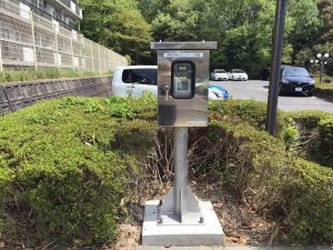 各実験室の排水のpHを監視するpHモニタリングシステムを導入しました。排水桝にpH電極を、その近くにpHモニター盤を設置して廃水のpHを監視します。また、それぞれのpHモニター盤は廃水処理設備制御盤と光ファイバーケーブルで接続され、廃水処理設備制御盤に設定された専用タッチパネルで閲覧可能です。
